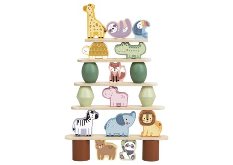 Balansujące drewniane zwierzęta – układanka w stosy, 29 elementów