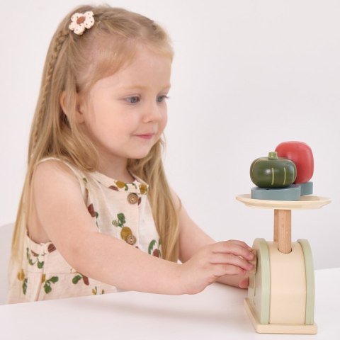Waga doskonale sprawdzi się jako wyposażenie dziecięcej kuchni lub zabawki do zabawy w sklep. Dzięki ruchomej dźwigni dziecko może eksperymentować z równowagą i balansowaniem przedmiotów, ucząc się jednocześnie przez doświadczanie.