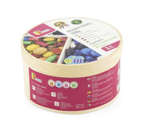 Drewniane koraliki do nawlekania – 608 elementów w pudełku