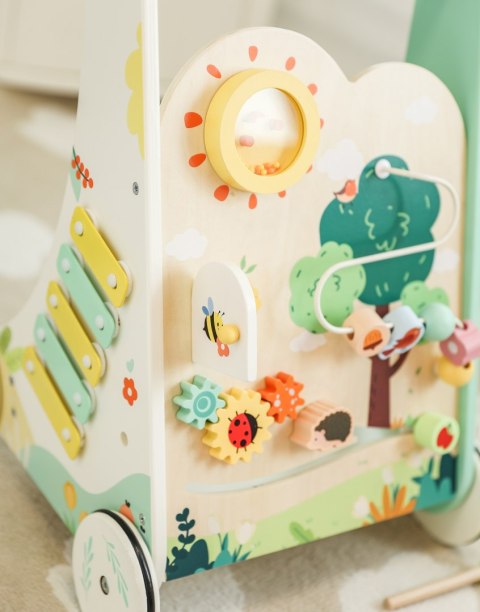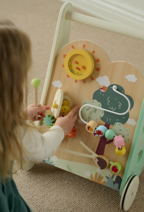 Połącz naukę z zabawą! Drewniany pchacz multifunkcyjny 8w1 "Leśny Chodzik" to doskonały sposób na rozwijanie koordynacji, równowagi i zdolności sensorycznych. Zamów już dziś i baw się razem z maluszkiem!